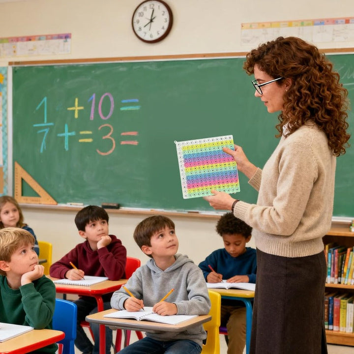 Vibrant color bands guide the eyes to number patterns, improving memorization and classroom participation.