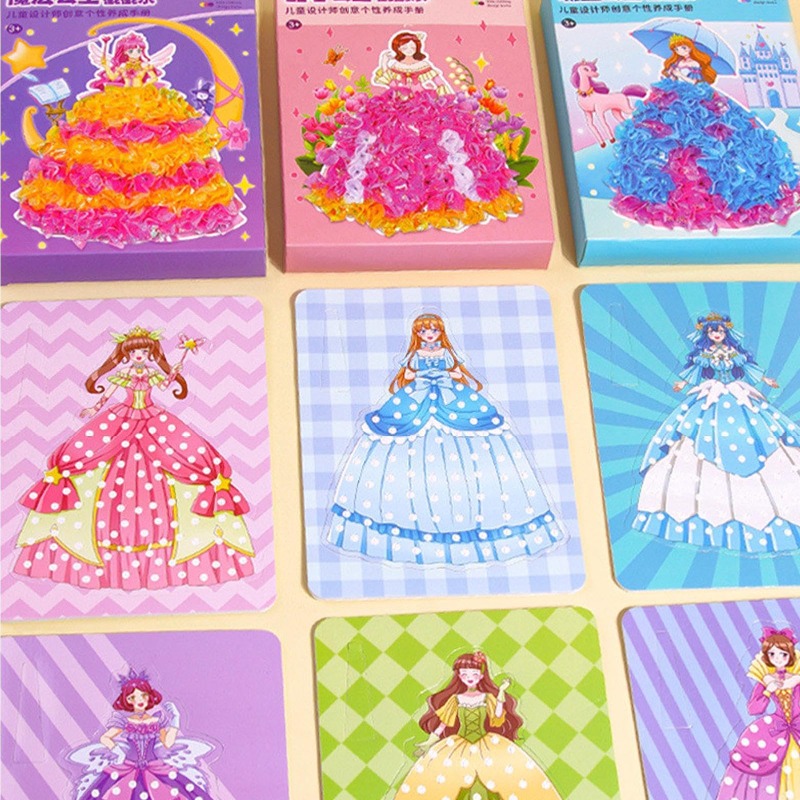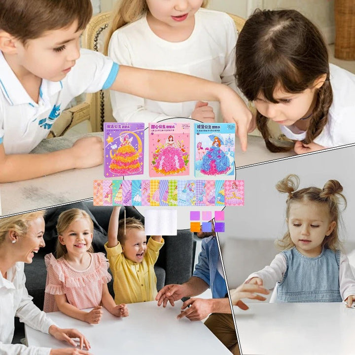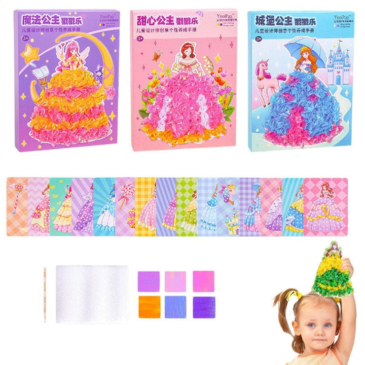 From charming princesses to sweet florals, this mess-free fabric art kit turns simple squares into 3D textured dresses. Kids build confidence as they match colors, press the fabric into the marked spots, and watch each gown bloom.